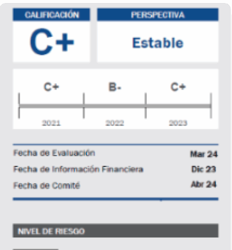 Renovamos nuestra calificación crediticia con MicroRate, ya que, obtuvimos una calificación de C+ con perspectiva estable en el corte de evaluación del año 2024.
