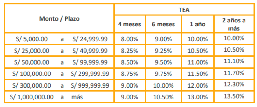 Imagina un futuro en el que tus ahorros no solo permanezcan resguardados, sino que también generen un crecimiento significativo. Nuestro “Depósito a Plazo Fijo” te brinda la posibilidad de obtener rendimientos atractivos, con una súper tasa desde 10% TREA para ahorros desde S/5000. Es momento de dar el paso hacia una inversión inteligente que te lleve hacia la prosperidad financiera.